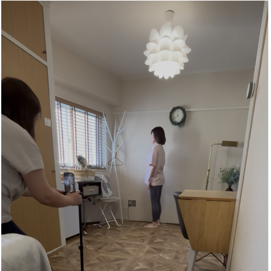 立ち姿勢と座り姿勢を、前・後・左右からそれぞれ1枚ずつ、計8枚撮影します。